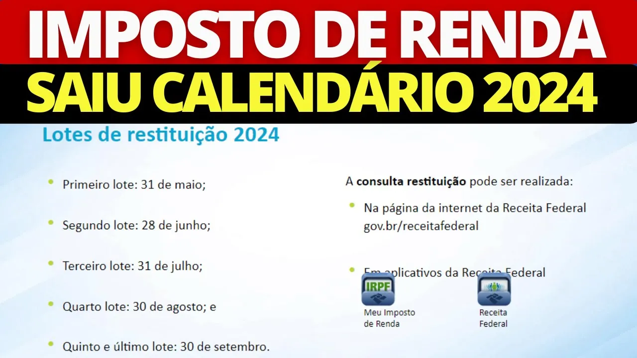 IMPOSTO DE RENDA 2024 - SAIU CALENDÁRIO DE PAGAMENTO, RESTITUIÇÃO, PARA IDOSOS
