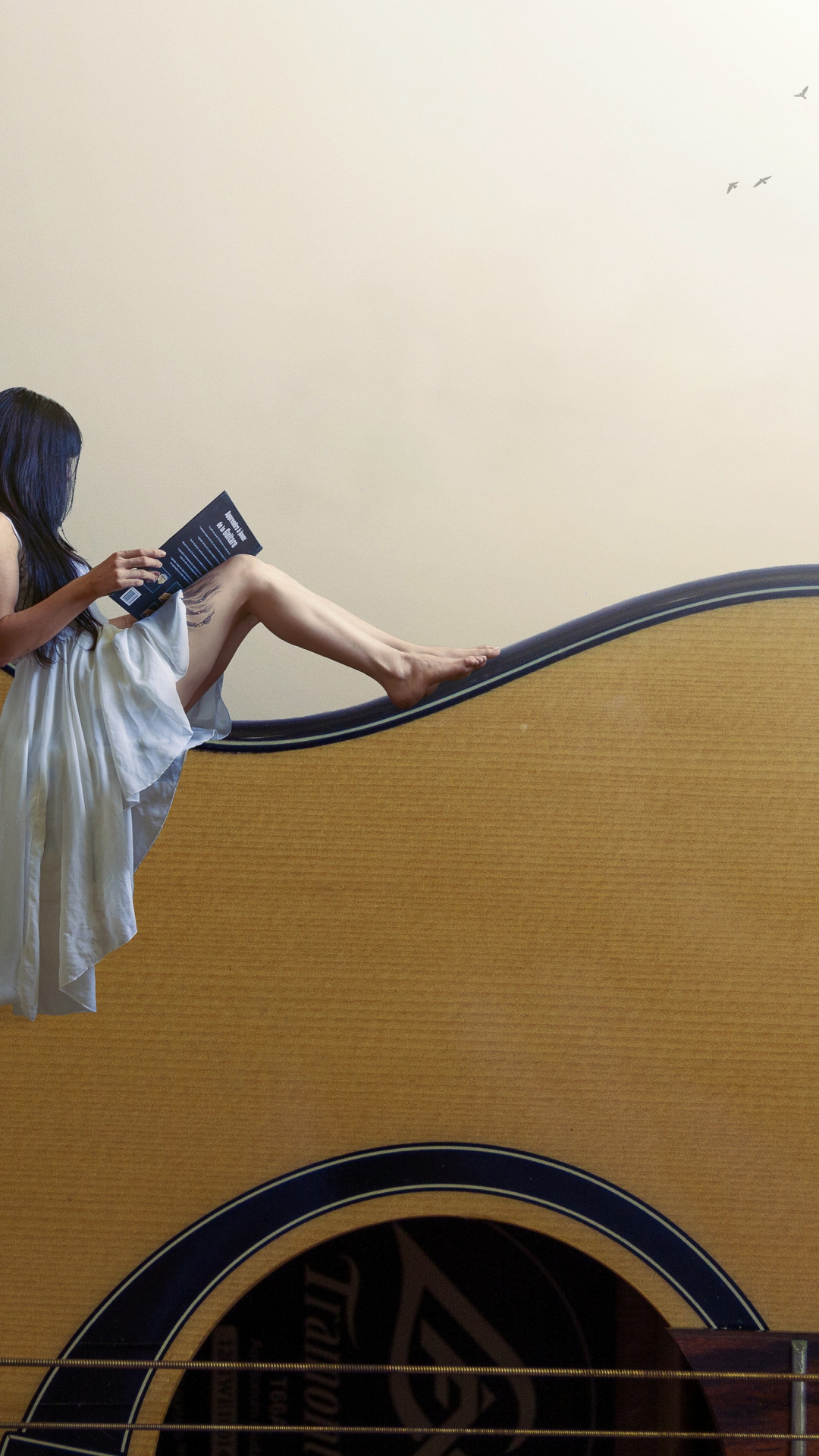 Baixe este wallpaper com o nome: Lendo O Livro Sobre O Violão na resolução iPhone 6 Plus. Ideal para telas com alta densidade de pixels