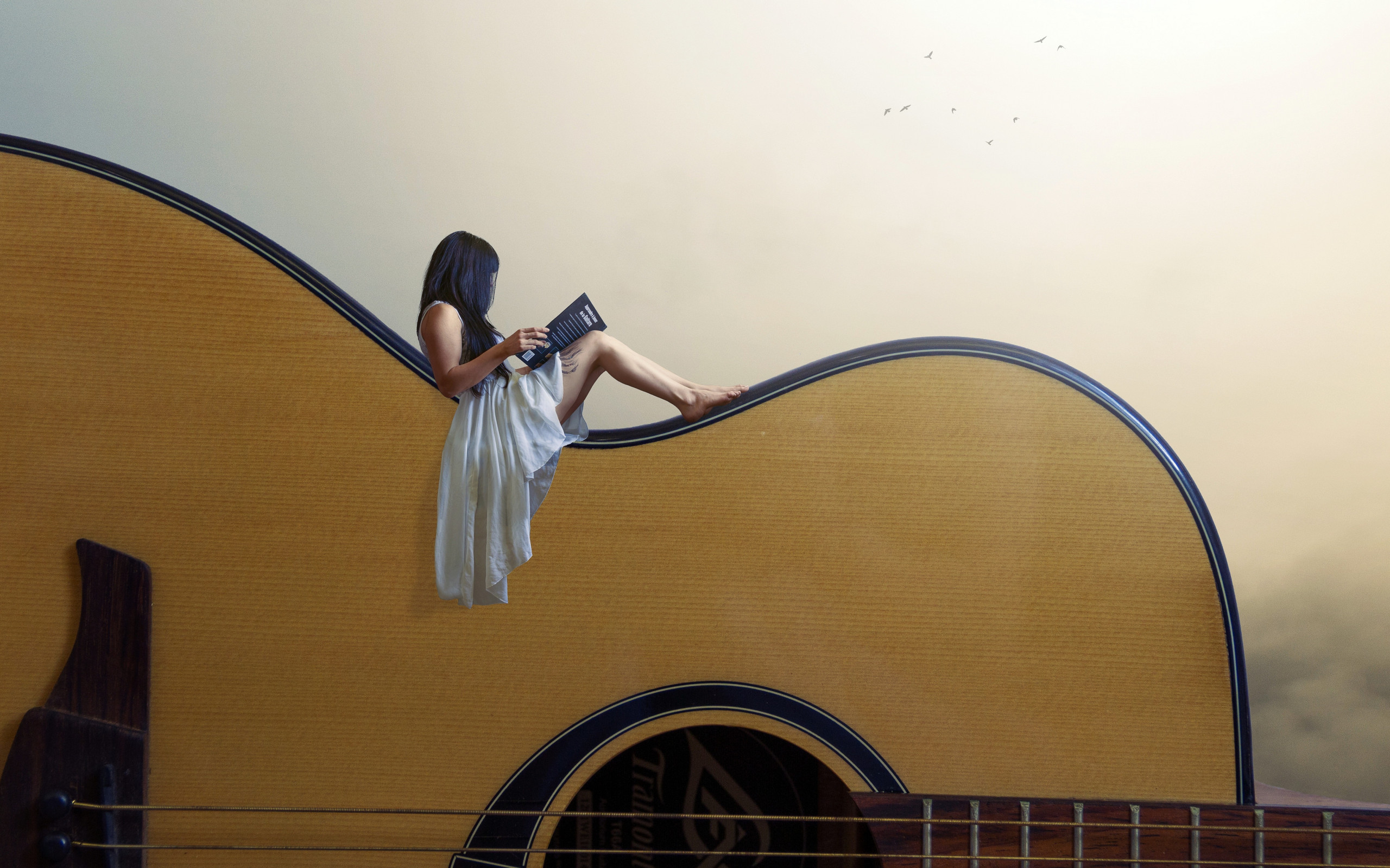 Baixe este wallpaper com o nome: Lendo O Livro Sobre O Violão na resolução Resolução 2560x1600. Ideal para telas com alta densidade de pixels