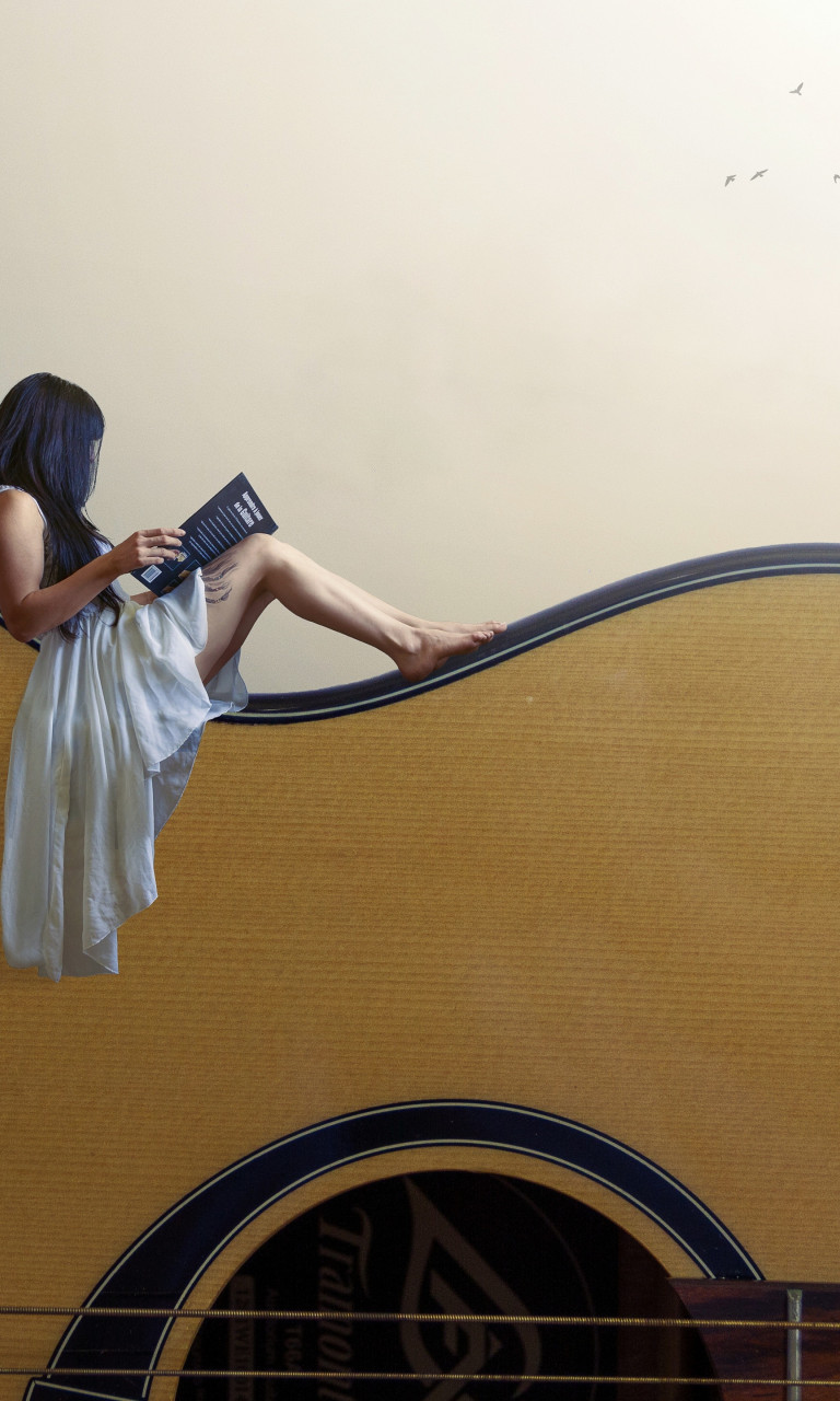 Baixe este wallpaper com o nome: Lendo O Livro Sobre O Violão na resolução Resolução 768x1280. Ideal para telas com alta densidade de pixels