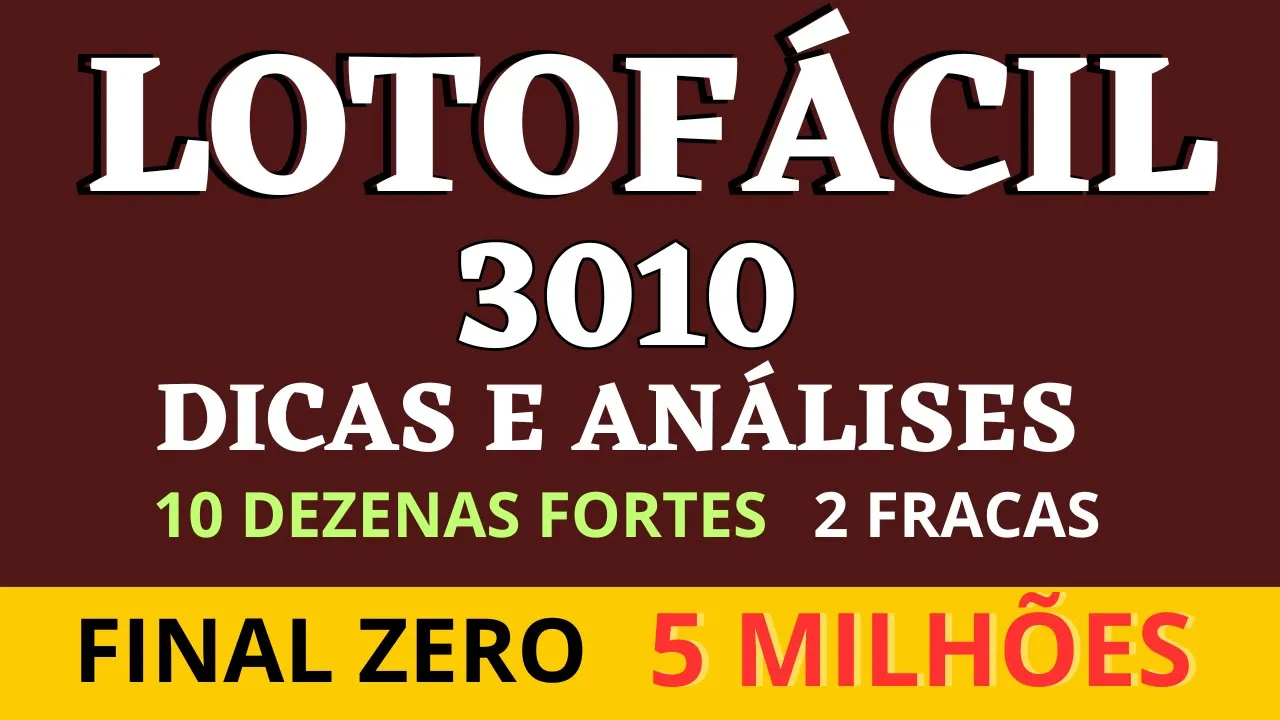 LOTOFÁCIL 3010 DICAS E ANÁLISES 10 FORTES 2 FRACAS FINAL ZERO 5 MILHÕES