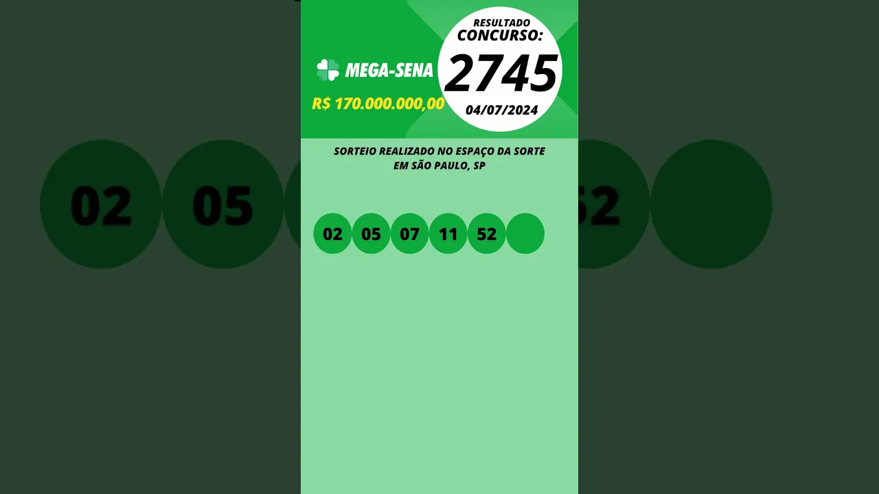 Mega-Sena Resultado Concurso 2745 04/07/2024 #megasena #resultadomegasena2745